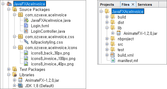 위의 프로젝트 구조처럼 Libraries에 AnimateFX-1.2.0.jar 파일이 추가되였습니다. 업로드된 프로젝트 압축파일의 lib폴더에 해당 라이브러리 파일이 있습니다. Add JAR/Foler... 메뉴를 통하여 추가 등록하면 됩니다.