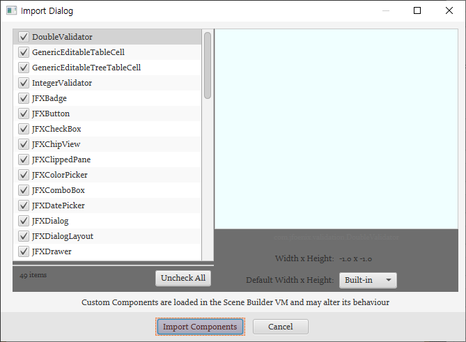추가되는 컴포넌트 목록을 확인할 수 있습니다. 모두 체크 후, Import Components를 클릭합니다.